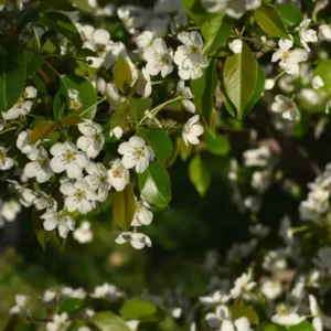 Dessert Pear Conference fruit trees. – Remains the number one choice because of its reliability under less than favourable conditions. Conference received the Award of Merit from the Royal Horticultural Society. Conference fruits are long and narrow with juicy but firm flesh. Picking time late September. Self fertile though a pollinating partner will ensure a better crop. Pollination group B.